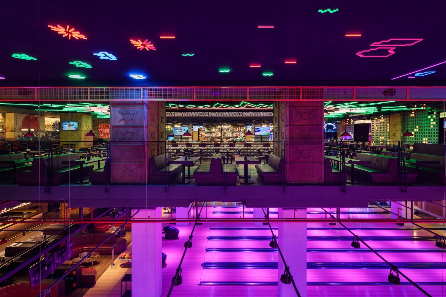 Brass Monkey is a dynamic and vibrant social destination offering a unique and exciting experience. Spanning over 3000 sqm, it features a wide range of entertainment activities, including 12 bowling lanes, billiards, and arcade games. The venue also offers a diverse menu with delicious options such as tacos, sliders, pizzas, and many other delectable dishes, complemented by a variety of beverages. Brass Monkey Social is the perfect spot for those seeking fun, relaxation, and great food in an energetic and welcoming environment.
